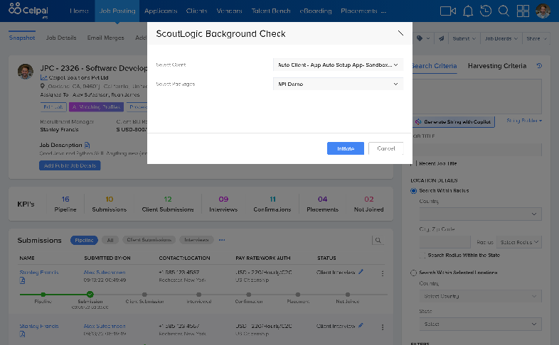Recruiters can now initiate and track background checks through both ScoutLogic and TraqCheck directly from within Ceipal ATS—with results and status updates flowing back into the platform automatically. No more switching between systems to chase verification progress.
